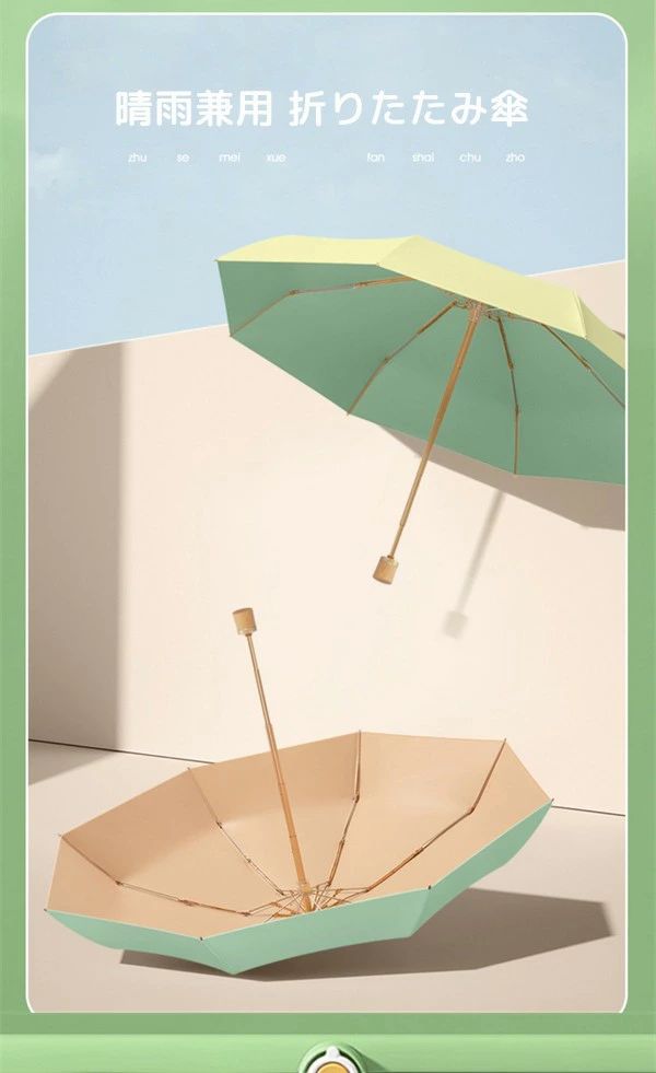 軽量 コンパクト ひんやり傘 UPF50+ 折り畳み傘 折りたたみ傘 晴雨兼用傘 日傘 木製 持ち運び 持ちやすい 多彩 鮮やかな 綺麗な