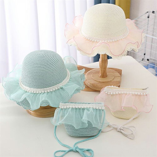 子供用 麦わら帽子 バッグ 2点セット ハット 女の子 サンハット 春 夏 キッズ 日よけ UV対策 紫外線対策 サンバイザー つば広 遮光 折りたたみ 通気 涼しい 可愛い 通園 通学 海遊び プール 旅行 レジャー 子供の日 誕生日 プレゼント 3歳 4歳 5歳 6歳 7歳 8歳