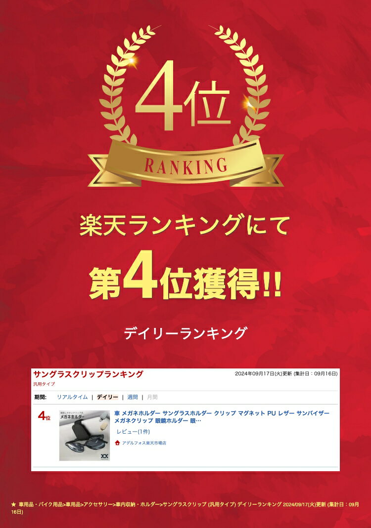 ・クリップ式なので取り付けはサンバイザーに挟むだけ ・マグネット内蔵の為スムーズにメガネを掛けられます ・クレジットカードを一緒に挟める ・収納しやすいコンパクト設計 ・お洒落なレザー調デザイン 【サイズ】10cm×4.5cm×2.5cm【素材】PUレザー、磁石 【カラー】ブラック、グレー、ベージュ 使い方の動画あり 購入日から3ヶ月間保証 自然故障の場合保証いたします。 (故意の破損、落下による破損等は保証の対象外) **保証申請はメールにてご連絡をお願いいたします。 関連ワード 帰省 旅行 カー用品 スリム ドライブ 折り畳める 折りたたみ 折り畳み 運転 長距離ドライブ 長距離運転 運転 トラック 汎用品 人気 黒 車用品 アクセサリー ブラック 運転 グッズ