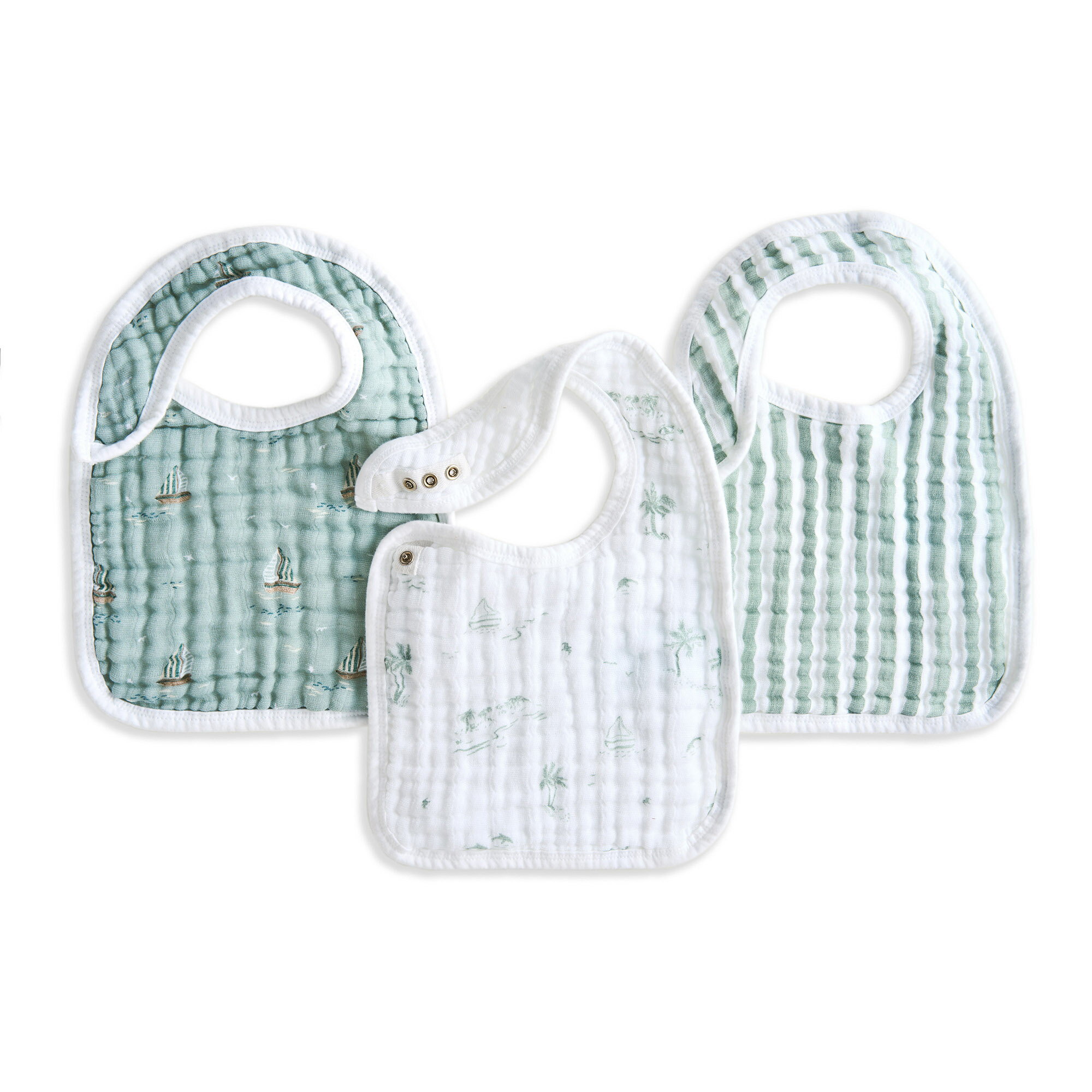 【セール 30%OFF】 《GOTS認証オーガニック》スタイ 3枚 セット ビブ オーガニック コットン ダブル ガーゼ 100% よだれかけ お食事 エプロン スナップビブ aden + anais セイリングシーズ asno30006 23 x 32cm