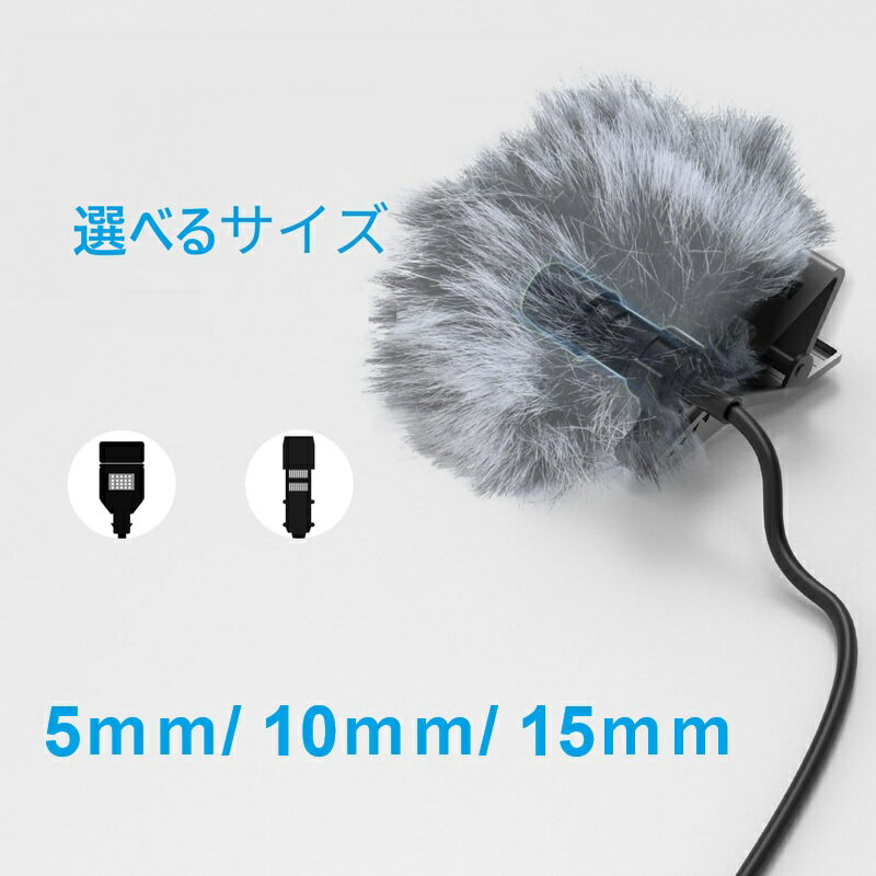 汎用 風切音対策 ファー マフ 5mm/10mm/15mm マイクカバー 雑音低減 ピンマイク 風防対策 動画撮影 ライブ配信 ラペル ラベリアマイク ワイヤレスイヤホン