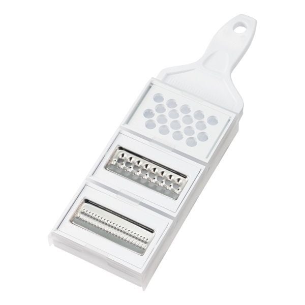 20251114 [HOME]カセットを交換して「スライス・おろし・千切り・つま切り」4種類の調理ができます。1台4役なのに超省スペース。カセットが綺麗に収納できて散らばりません。 ・刃を内向きに収納できる構造 ・ケースごと横置きして自立収納可能 品番HC-CSS1211-WH25JANコード 4973996089327原産国日本商品サイズ 全長281×幅89×厚み27mm(ケース含む)原料本体・カセット:ABS樹脂ケース:ポリプロピレン刃部:ステンレス鋼耐熱温度本体・カセット:80℃ケース:100℃
