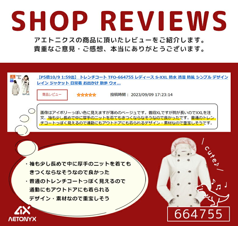 【P2倍 11/18〜24H】 トレンチコート TFO-664755 レディース S-XXL 防水 透湿 防風 シンプル デザイン レイン ジャケット 日常着 お出かけ 散歩 ウォーキング 雨の日 通学 The First Outdoor 公式 アエトニクス