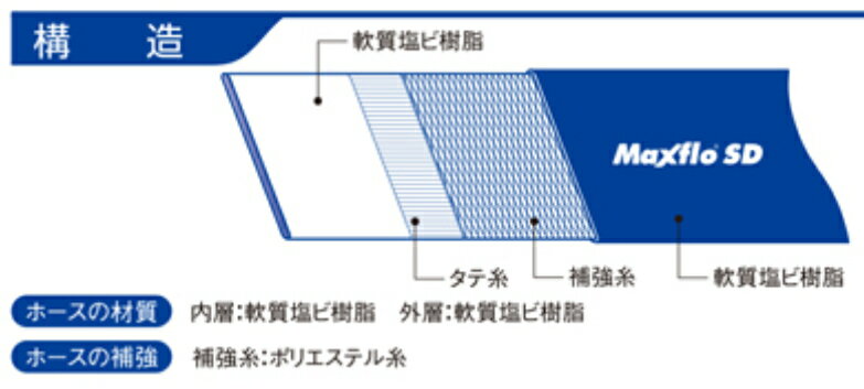 土木・建築・農業・鉱工業などの幅広いステージで活躍する、 “Maxflo”シリーズのエコノミースタンダードタイプです。 【特長】 ●継ぎ手を使わずに長距離の送・排水が可能です。 ●柔軟で屈曲性に富んでいるため、折りたたみができ、格納のスペースをとりません。 ●50m、100m品には検尺入り 【用途】 ●一般の送・排水 ●高低差の少ないところでの送・排水作業 ●土木建築用(給水、排水、汚水処理等) ●農業用(給水、排水、灌漑等) ●鉱工業用(給水、排水等)1
