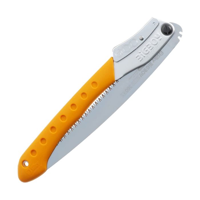 【取寄商品】受注後に取寄せいたします。お届けまで1週間程度要します。※メーカー完売の場合にはキャンセルとなる場合がございます。 【生産地】 刃物の町で有名な兵庫県小野市で生産 【おすすめ用途】 剪定に最適 【おすすめユーザー】 とにかく切れ味を重視する人に最適 【おすすめの太さ】 直径約4cm~12cmの生木 【商品特徴】 1.携帯に便利な折込タイプ 2.切断面が非常に綺麗な仕上がり 3.ゆるやかな2000Rカーブソー 【規格】 折込時:405mm×80mm×20mm 使用時:760mm×90mm×20mm 刃渡り:360mm 目数:6.5枚目/30mm 切り幅:1.4mm 重量:405g 【特長】 <刃渡り360mm、両手で握ってもっと速く> ヨーロッパ、アメリカでおなじみの“ビッグボーイ2000”は、両手で握れる長いグリップと、刃渡り360で2000Rのカーブ刃。 造園・果樹の太枝剪定、山林間伐など様々な現場で活躍。 緩やかなカーブ刃で、スピーディーに切断できる。 高品質な鋼材に、高硬度の衝撃焼入が施された強靭な刃。 縦・横・斜めの繊維を断ち、削り出す特殊目立て。 携帯性を重視し、太い枝も楽に切りたい方におすすめ。
