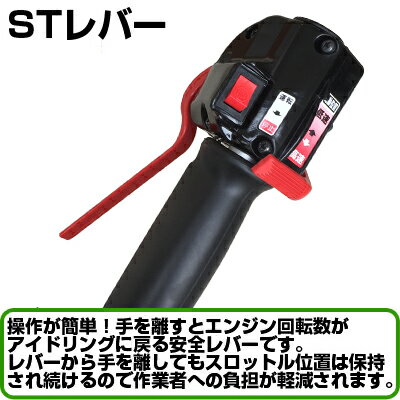 【追加送料について】 こちらの商品のお届け先に北海道、沖縄県、その他離島地域をご指定頂く場合、追加送料7,900円が必要となります。 始動性・加速性に優れた新型チョーク機構「デュアルチョークキャブレタ」搭載、ゼノアBCZ245-DCシリーズ新発売。本格業務用のバランスタイプ、重量重視のプロユーザーにお勧めの1台。排気系を見直すことで、よりパワーアップした新型ストラト・チャージドエンジン搭載でパワフルでありながら、環境にもお財布にもやさしい一台。BCZ235/265シリーズで実績のあった「デュアルチョークキャブレタ」を新たに採用し、始動性と始動直後の加速性がより改善され、より安定度が増しています。高圧縮で排気デコンプ無しの硬派なエンジンになりますが、ダンパー式EZスタート搭載により抵抗が少なく、簡単にエンジンがかけられます。エアクリーナーは防塵性能にすぐれたパフ剤のフラットタイプを採用し、塵や埃によるエンジンのトラブルを未然に防ぎます。通常のハンドルブラケットに比べ手に掛かる振動を低減する防振ブラケットと新型ダンパシャフトにより振動が伝わりにくい操作棹、そして何より特徴的なのは鮮やかな赤のパイプ!通常のアルミパイプより約1.5倍の高い強度を誇るジェラルミンパイプを採用することにより軽量でありながら高耐久。まさにストロングモデル、ハードな雑草刈りにも威力を発揮します。ナイロンカッターももちろん使えます。ギヤケースは、草の巻付を低減し耐久性も抜群です。操作スロットルは操作が簡単で、作業者の負担が少ないSTレバーを採用。任意のエンジン回転に固定でき、レバーから手を離すと自動でアイドリングに戻るので安全です。エンジンのストップスイッチも手元に設置されているので緊急時も素早くエンジンを停止可能です。ハンドルは無理のない姿勢で振り回し操作が楽な両手ハンドルタイプ。左右非対称ハンドルを採用しているので振り幅が広く、作業効率もアップします。両肩タイプ肩掛けバンドが標準で付属。両肩の重量を分散させ、腰あてが付いたタイプで作業者の負担を軽減します。255mmの高級チップソーも付属しています。起伏の緩やかなところでの草刈作業にお勧めの一台です。 メーカー ゼノア 型式 BCZ245GW-DC 外形寸法 全長1828×全幅560×全高403mm ハンドル 両手 本体乾燥質量 4.5kg 標準附属刈刃 チップソー φ255×40P スロットルレバー ST レバー 動力伝達方式 自動遠心クラッチ、スパイラルベベルギャ 減速比 1.462(19:13) 刈刃回転方向 反時計回り(作業者から見て) 刈刃取付ネジサイズ M7 メインバイプ(直径) ジュラルミン(φ24mm) エンジン型式 GZ22S 排気量 22.5cm3 タンク容量 0.50L 使用燃料 潤滑油混合ガソリン 使用潤滑油 2サイクルエンジン専用オイル 混合比 ゼノア純正オイル(FD級)使用時50:1/ゼノア純正オイル(FC)使用時40:1 キャブレタ ロータリバルブ式(デュアルチョーク) 点火方式 無接点式フライホイールマグネト スパークブラグ NGK BPMR8Y 始動方式 リコイルスタータ方式 停止方式 点火回路一次側短絡式(シーソー式) 関連キーワード ゼノア ZENOAH ぜのあ ZENOAH パワーツール エンジン式 エンジン ガソリン 2サイクル 2サイクルエンジン 草 雑草 畑 空地 土地 庭 山林 山地 下刈り 公園 緑地管理 農地 果樹園 耕作放棄地 休耕地 草刈り 刈払い 刈り払い 草刈り機 草刈機 刈払い機 刈り払い機 刈払機 エンジン草刈り機 エンジン草刈機 エンジン刈払い機 エンジン刈り払い機 エンジン刈払機 エンジン式草刈り機 エンジン式草刈機 エンジン式刈払い機 エンジン式刈り払い機 エンジン式刈払機 パワフル お勧め ナイロンコード ナイロンカッター BCZ245 BCZ245 ジュラルミン