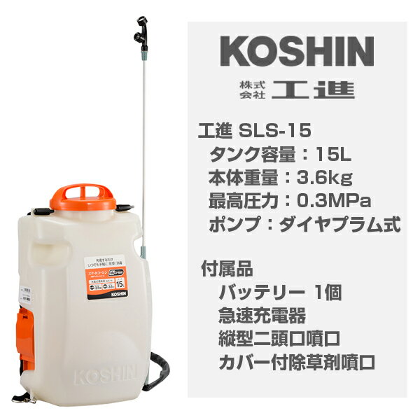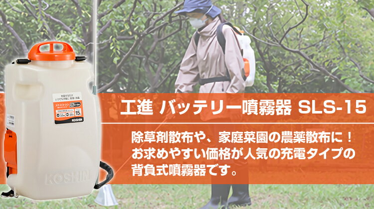 (メーカー認定店) 工進 バッテリー式噴霧機 SLS-15 (15Lタンク 充電式 背負式 除草剤散布 コーシン 農業用 家庭用 家庭菜園)