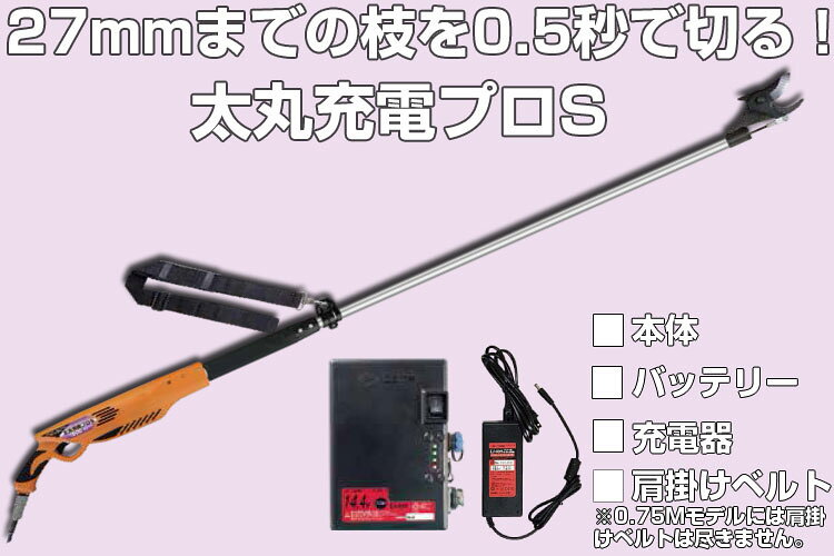 全長0.75m 全長1.0m 全長1.5m 全長2.0m ●ブラシレスモーター搭載ブラシレスモーターの寿命は驚異の5000時間以上。安定した性能を長くご使用いただけます。●高級刃物鋼+テフロン加工刃は高級刃物鋼を使用し、ヤニ・サビに強いテフロン仕上げ。替刃の交換も可能です。●セパレート式バッテリー&肩掛けベルト付き腰に装着するセパレート式バッテリーで取り回し楽々。疲労を軽減する肩掛けベルト付き。※0.75Mモデルには肩掛けベルトは付属していません。●切断本数約6000本!DC14.4V Li-ionバッテリー搭載。満充電で、27mmまでの枝を約6000本切断できます。※参考数埴であり、バッテリー状態や使用状況により異なります。●ハイスピード2時間充電!約2時間で充電完了!継ぎ足し充電可能。過負荷・過充電・過放電対策済みの安心設計。※完全放電状態からの参考時間です。バッテリー状態により充電時間は異なります。 ニシガキの太丸充電プロS 1500は、果樹や庭木の剪定作業を効率的に行うための電動剪定ばさみです。トリガーレバーを引くだけで、最大27mmの枝をわずか0.5秒で切断できるスピードタイプです。セパレート式のバッテリーを採用し、本体の重量を軽減しているため、長時間の作業でも疲れにくくなっています。果樹農家さんや造園業、植木職人さんの様なプロの方に最適です!この電動剪定はさみで、剪定作業がよりラクにより快適になります。 メーカー名 ニシガキ工業 JANコード 4964590940022 製品コード N-942 本体寸法 1480×162×56mm コード長 1300mm モーター定格電圧 DC14.4V モーター定格消費電力 240W 最大切断径 生木 約27mm※樹木の種類や刈刃の切れ味により異なります。 切断速度 約1秒/1サイクル 満充電時の切断本数 切断枝径 生木27mm・・・約6000本 付属品 バッテリー・充電器