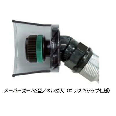 扇形の霧が遠近自在!●霧は手元のニギリを回転させることにより、狭角から広角に変えられ、扇形に広がるためムラなく散布できます。●ノズルや調整部(樹脂内部)は磨耗に強いステンレス製です。●キャップの緩みを防止し、取り外しも簡単なロックキャップを採用しました。(特許品) メーカー ヤマホ 製品コード 131350 JANコード 4530217109945 噴出量(1.5MPa) 5.8〜7.2L./分 到達距離 約4〜8m ノズル名称 NN-ZV-20S 散布幅 約15〜80cm※散布幅はノズルからの距離が1mでの数値 全長 127cm 質量 620g 取付ネジ G1/4