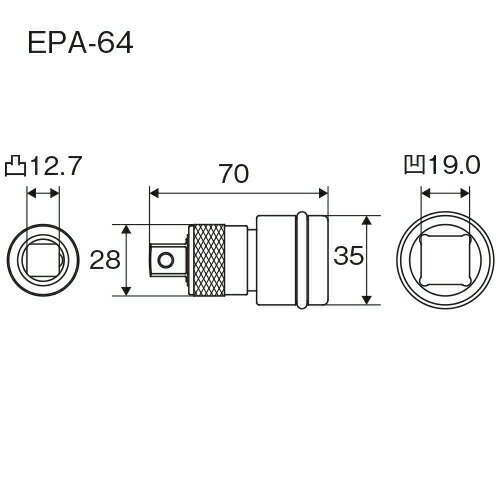 TOP/トップ工業 EPA-64 インパクトレンチ用 ワンタッチアダプター(変換タイプ) 凹19.0角→凸12.7角