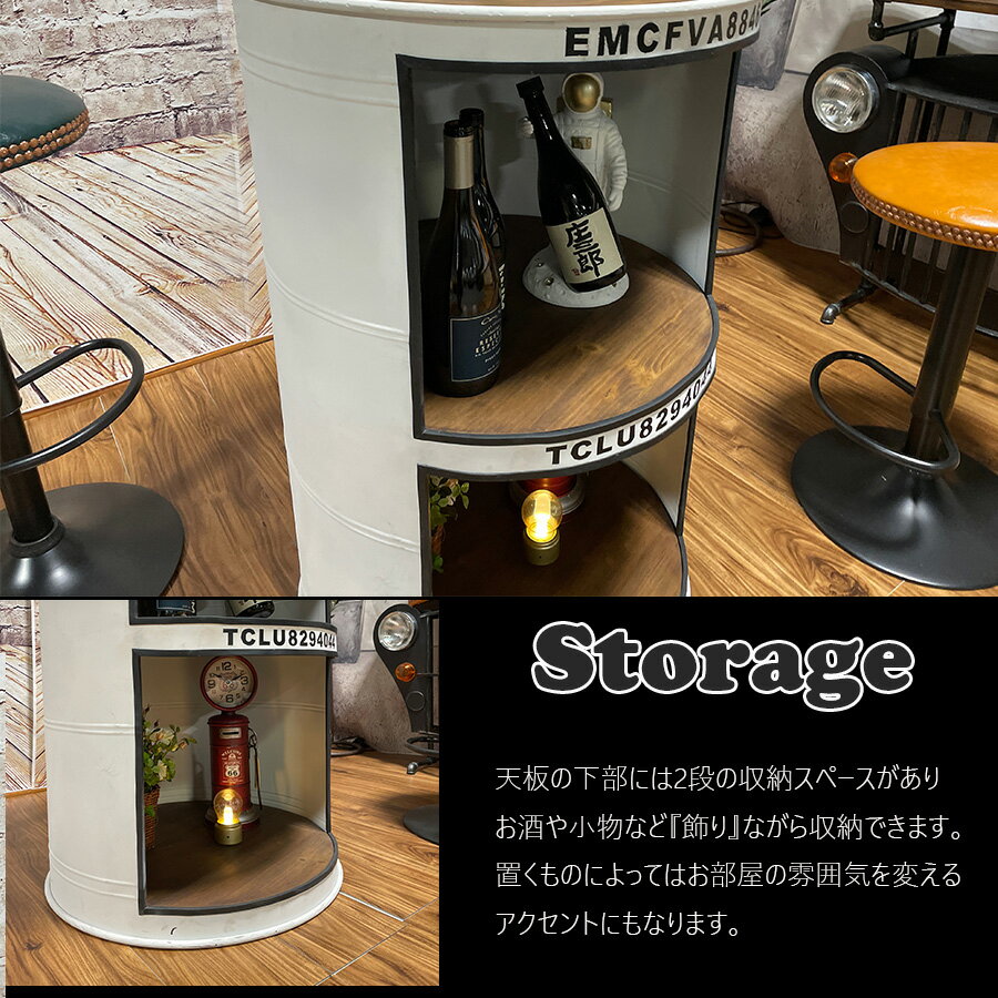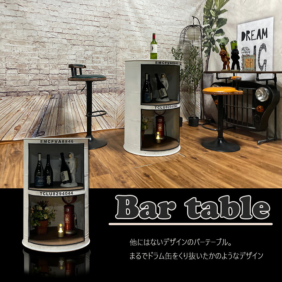セール対象商品 バーテーブル インダストリル おしゃれ 収納 テーブル アンティーク調 パイン材 木目 丸 丸形 ハイタイプ Bar ホワイト ヴィンテージ風
