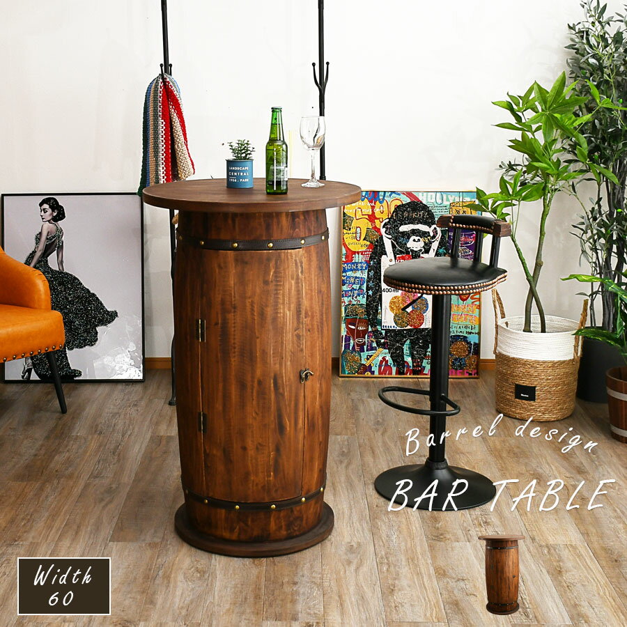 セール対象商品 カウンターテーブル テーブル 収納付き 杉材 リビング収納 樽 バレル おしゃれ 酒樽 異世界風 転生アニメ風 ギルド風 酒場 カフェテイスト 幅60cm コンパクト 高さ99cm バーテーブル 南国テイスト アニメ 漫画 映え お店