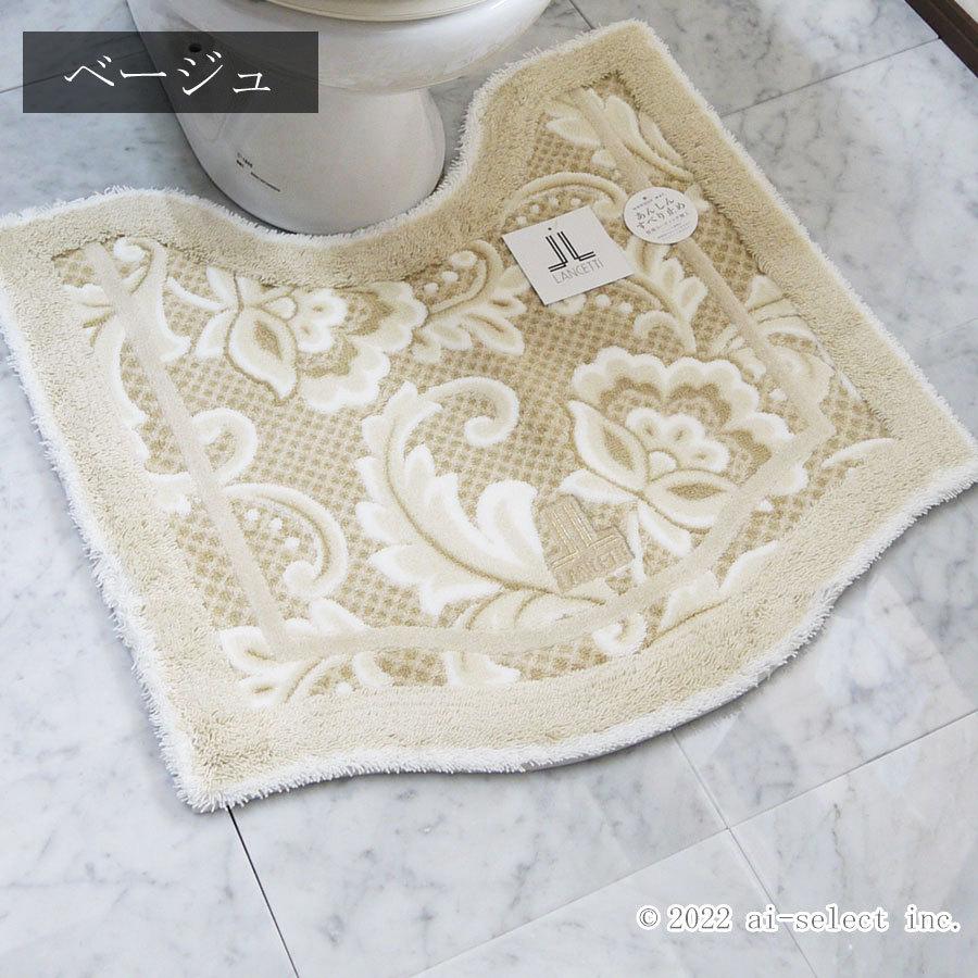 トイレマット優美な曲線 高級感 単品 送料無料 約65x65cm ピッツォ LANCETTI ランチェッティ ブランド 更紗模様 刺繍 風水 おしゃれ グレー / ベージュ 日本製 洗える インテリア 可愛い アラベスク ダマスク 和風 洋風