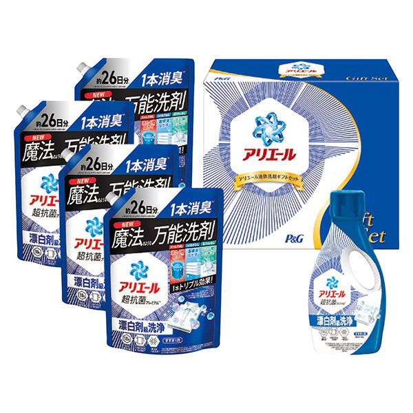 ※商品リニューアルのため現行商品在庫終了次第、パッケージデザイン・商品内容等が変更になります。予めご了承ください。 <PGLA-50E>●アリエールジェル(本体)720g×1、(詰替用)405g×7●原産国:日本●箱サイズ:約32.6×14.3×28.2cm●箱重量:約4.2kg●化粧箱入 <PGLA-50F>●アリエールジェル(本体)700g×1、(詰替用)625g×4●原産国:日本●箱サイズ:約32.6×14.3×28.2cm●箱重量:約3.9kg●化粧箱入 ※北海道・沖縄・離島など一部お届けできない地域、また別料金を頂く地域もございます。 あらゆるギフトシーンにどうぞ 内祝い お返し 出産 出産内祝い 結婚 結婚内祝い 御礼 快気祝い 快気内祝い 御見舞御礼 全快祝い お祝い 結婚式 引き出物 結婚祝い 結婚内祝い 引越しご挨拶 父の日 母の日 敬老の日 入学内祝い 入園内祝い 成人式 初節句 新築内祝い 粗品 記念品 二次会 景品 周年記念 コンペ景品 プレゼント 誕生日 お中元 残暑見舞い お歳暮 御年賀 贈答品 総合通販 一周忌 三回忌 法事引出物 香典返し 初盆 志 回忌法要 還暦御祝い 開店お祝い 退職 卒業記念品 お餞別 心ばかり 大量注文可 内祝 御返し 出産内祝 結婚内祝 お礼 快気祝 快気内祝 全快祝 御祝い 御祝 結婚式 引出物 結婚祝 御結婚お祝い 御結婚御祝 結婚御祝 結婚内祝 引越挨拶 引越御挨拶 挨拶 御挨拶 ごあいさつ ご挨拶 入学内祝 入園内祝 新築内祝 周年記念 ギフト 誕生日 中元 御中元 残暑見舞 残暑御見舞 歳暮 年賀 お年賀 法事 法要 法事引き出物 香典 還暦祝 還暦御祝 還暦お祝い 開店祝 開店御祝 開店御祝い 開店祝い 出産祝い 餞別 メッセージカード無料 メーカー希望小売価格はメーカーカタログに基づいて掲載しています