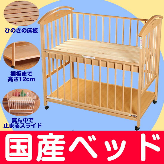 【ベビーベッド レンタル】すのこハイタイプベッドオットー(小物置き板付)【120×70cm】 / 【日本製】澤田工業 国産ヒノキすのこ床板 V型オットー【 ベビー用品 レンタル】