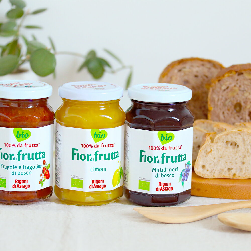フィオールディフルッタオーガニック フルーツスプレッド もぎたてのようなオーガニックフルーツをおいしく・いつでも 高品質なオーガニックフルーツと自社製のオーガニックアップルジュース で作られたフィオールディフルッタ(FiordiFrutta)ブランドのフルーツスプレッド。 ニールセンデータによるとイタリアで売上No.1の大人気アイテムです。(2006年以来) オーガニックにこだわりぬいたフルーツから生まれるフィオールディフルッタは、 無加糖ながらも適度な甘味をもち、とてもバランスのとれた上品なおいしさのあるジャムです。 使用されているオーガニックフルーツは、主にイタリア産と リゴーニディアシアゴ社の自社有機果樹園があるブルガリア産。 フルーツは完全に熟したものを手摘みされ、その味や風味、 そして可能な限り栄養分を保ちつために真空状態で低温調理されています。 取得認証:EU有機認証、有機JAS認証、BioAgricert 【砂糖不使用】【シトラス由来ペクチン使用】 | LINE UP ストロベリー センガ・センガナ種、ポルカ種の有機ストロベリーで作られています。パンやヨーグルト、タルトやケーキのフィリング、リコッタチーズやマスカルポーネチーズのお供としておすすめ。濃厚な色と味わいはまさに「果実の宝石」です。 ブルーベリー 有機ワイルドブルーベリーで作られた、味・香りがギュッと詰まったスペシャルなジャムです。パンやヨーグルトはもちろん、熟成したチーズやローストしたお肉にも合います。育ったそのままの味わいを楽しめます。 レモン 爽やかなレモンの酸味と甘味のバランスが程よいジャムです。パンやヨーグルト、チーズ、スイーツ、またスムージーやアイスクリームのアクセントにもおすすめです。 ザクロwithアロエ 完熟の有機ザクロの味わいにアロエとハイビスカスがフレッシュさと 深みを添えています。パンやヨーグルト、デザートと供にお召し上がり下さい。 | オーガニックへのこだわり 「BioAgricert」は、イタリアの有機認証団体です。厳しい基準でオーガニック製品の品質認証を行っており、 消費者はもとより、オーガニック製品の生産者からも高く信頼されています 有機認証は、一般的に事業者(作り手)が有機基準に沿って生産したことを第三者の認証機関が証明するシステムで、誰もが信頼できるシステムとして世界各地で実施されています。事業者(作り手)は有機の基準に従って生産しています。 EU有機(オーガニック)認証とは、第三者の認証機関が、EUの有機農業規則に従って生産された農産物であることを証明するものです。EU内で包装済みのすべての有機食品に対する表示が義務化されています。 Fiordifrutta(フィオールディフルッタ) 北イタリア、アルプスのふもとに位置するリゴーニ ディ アシアゴ(Rigoni di Asiago)社は、イタリアのサクセスストーリーの一つとして注目される高品質のナチュラルフードにフォーカスしているファミリーカンパニーです。リゴーニファミリーは、卓越した味、付加価値の高い製品を生産しながら、自然保護にも最大限の努力を払っています。 同ブランド別のアイテムはこちら その他「ジャム」はこちら SPEC 名称:有機フルーツスプレッド 内容量:【ストロベリー・ブルーベリー・ザクロwithアロエ】250g 【レモン】260g 原材料: 【ストロベリー】有機いちご、有機濃縮リンゴ果汁/ゲル化剤(ペクチン) 栄養成分表示(100gあたり) 熱量 115kcal たんぱく質 0g 脂質 0g 炭水化物 37g 食塩相当量 0.07g 【ブルーベリー】有機ブルーベリー、有機濃縮リンゴ果汁/ゲル化剤(ペクチン) 栄養成分表示(100gあたり) 熱量 157kcal たんぱく質 0g 脂質 0g 炭水化物 38g 食塩相当量 0.13g 【レモン】有機濃縮リンゴ果汁、有機レモン、/ゲル化剤(ペクチン) 栄養成分表示(100gあたり) 熱量 195kcal たんぱく質 0g 脂質 0g 炭水化物 48g 食塩相当量 0.12g 【ザクロwithアロエ】有機ザクロ、有機濃縮リンゴ果汁、有機アロエベラ、有機ハイビスカスエキス/ゲル化剤 (ペクチン) 栄養成分表示(100gあたり) 熱量 131kcal たんぱく質 0g 脂質 0g 炭水化物 32g 食塩相当量 0.00g 賞味期限:パッケージ下部に記載 保存方法:直射日光を避け、常温で保管してください。 原産国:イタリア 輸入者:MIEPROJECT株式会社 区分:食品 広告文責:(株)エル・ローズ TEL 0120-291-410ご注意: ・保存料は一切使用しておりませんので清潔なスプーンを使用し、開栓後はお早めにお召し上がり下さい。