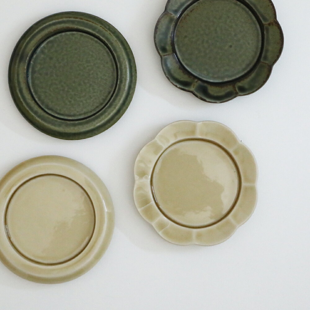 hibi 瀬戸焼マットトレイ 全4種 hibi専用に作られた 瀬戸焼マットトレイ hibiと日本各地の志ある作り手が、共に伝統をアップデートしてゆくコラボレーションプロジェクト”SOW”のプロダクト。 日本の焼きものの代名詞的存在「瀬戸焼」で作ったマットトレイです。 今回制作した「黄瀬戸」と「織部」は、国内で最初に釉薬を使用した瀬戸という産地を象徴するアイテムです。 瀬戸焼らしい伝統の色合いと表現技法を取り入れながら、日常に溶け込みやすいフォルムに仕上げました。 素朴で味わいのある焼き物ならではの、一点一様の表情もお楽しみいただけます。 ※hibiをご使用いただくにはマットが必要です。マットは付属しませんので、予めご了承ください。 瀬戸焼 1,000年以上の歴史をもつ瀬戸焼。常滑、信楽、丹波、越前、備前と共に日本六古窯の一つです。 瀬戸は釉薬を日本で初めて使用した日本を代表する陶都で、「せともの」という言葉は、 長い歴史のなかで、やきものづくりをけん引してきた瀬戸焼からきています。 時代とともに変化する人々の生活様式に合わせて技術や文化を柔軟に取り入れてきたからこそなせる業。 瀬戸焼は、中国の青磁や白磁を彷彿とさせる、白く美しい素地が特徴の焼き物。 その素地を生かした様々な施釉製品が生み出されています。 今回のアイテムに使用されているのはその中でも伝統的な「黄瀬戸」と「織部」という釉薬です。 陶土は瀬戸層群で採取された木節(きぶし)粘土や蛙目(がえろめ)粘土、珪砂(けいさ)などを使用。 耐火性が高く、可塑性に富むことから様々な製品作りに適しています。 一点一様の異なる表情もお楽しみください。 職人たちによる手づくりの為、一つ一つの表情が異なります。以下のような特徴が見られる場合がございますが、手づくりの味わい・個性としてお楽しみいただき、ご理解いただいた上でご購入ください。 釉薬や化粧土の色ムラが見られる場合がございます。 全てメーカーの品質基準をクリアした商品になりますので、ご了承の上お買い求めください。 hibi 淡路島のお香と、播磨のマッチ。兵庫県のふたつの伝統産業の担い手が出会って生まれたブランドです。 マッチのように擦って着火させるお香、というアイデアを出発点に、約3年半の開発期間と試行錯誤を経て2015年に「hibi」が誕生しました。 hibiの由来は日本語の「日々」。毎日そばに置いて、その時々の気分やシーンに合わせて自由に香りを楽しんでほしいとの願いを込めて名付けられました。かつては家庭の必需品だったマッチや線香の新しい価値の火付け役として、今や日本だけでなく海外約20ヶ国以上で愛されています。 同ブランド別のアイテムはこちら その他「お香」はこちら SPEC 商品名:瀬戸焼マットトレイ サイズ:【輪花黄瀬戸/ 輪花織部】約Φ80mm 厚み約12mm、【丸黄瀬戸/ 丸織部】約Φ80mm 厚み約12mm 素材:磁器(瀬戸焼) 生産国:日本 広告文責:(株)エル・ローズ TEL 0120-291-410ご注意: ・釉薬のかかり具合により濃淡が出ることがあります。 ・メーカーの品質基準をクリアした商品になりますので、返品交換はお受けいたしかねます。ご了承の上お買い求めください。
