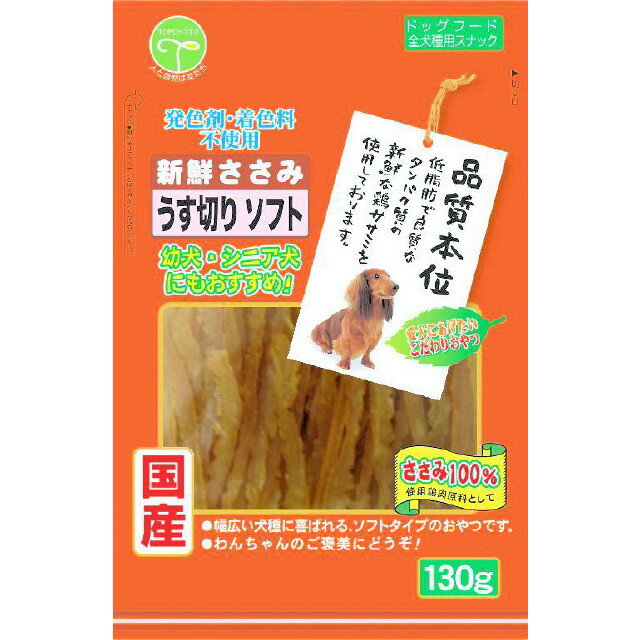 保存料、着色料、発色剤、酸化防止剤を使わずに作りました。 食欲そそるおいしい香りと旨みがあふれ出す鶏ささみをたっぷり贅沢に使用。 小型犬やシニア犬も食べやすい、やわらかくちぎって与えられるスティックタイプのおやつです。 乳酸菌を配合し、愛犬のお腹の健康維持にも配慮しました。 【原材料】 鶏ササミ、糖類、調味料、乳酸菌、グリセリン、ソルビトール、リン酸塩(Na、K)、ミネラル類(ナトリウム) エネルギー:290kcal(100g当たり) 内容量:120g 原産国:日本 ※※商品画像はイメージです。 メーカー都合等により、予告なくパッケージ、仕様(原材料、生産国、色、形状、サイズ等)の変更がある場合がございます。 あらかじめご了承ください。