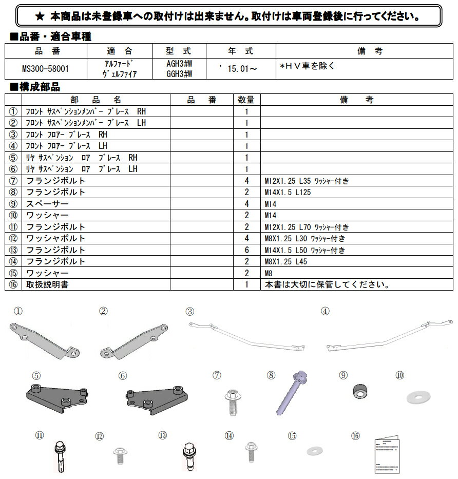 TRD メンバーブレースセット MS300-58001 30系 アルファード ヴェルファイア AGH3#W GGH3#W 2015.01〜 ガソリン車用