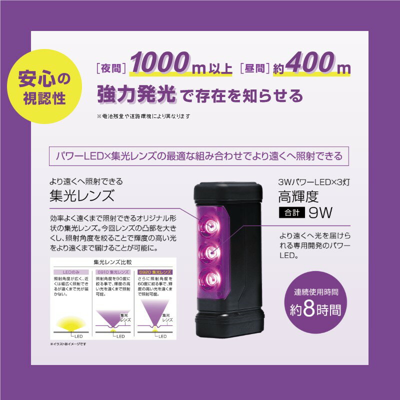 amon エーモン工業 停止表示灯 PURPLE SAVER パープルセーバー 6920 道路交通法施行規則適合品 三角表示板の代わりに 防水カバー付