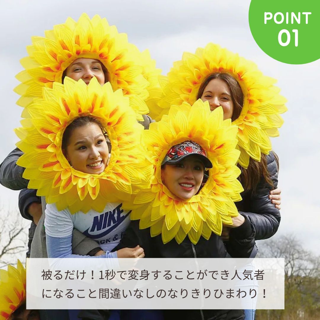 【楽天1位20冠達成】ひまわり 被り物 45cm 5枚セット マスク ヒマワリ 向日葵 可愛い 変装 面白 仮装 パーティーグッズ イベント用品 目立つ デコレーション 室内 飾り付け 撮影小物 コスプレ 誕生日 パーティー クリスマス Xmas 文化祭 ハロウィン 盛り上げ アイテム 大人数