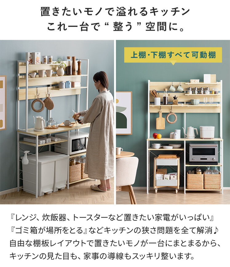 レンジ台 キッチンカウンター キッチンラック ゴミ箱上ラック ごみ箱上ラック ごみ箱上収納 食器棚 収納棚 おしゃれ 北欧 レンジボード 大型レンジ対応 調味料 ゴミ箱上 収納 棚 レンジラック ラック キッチン収納 可動棚 幅120 120cm ナチュラル シンプル emery