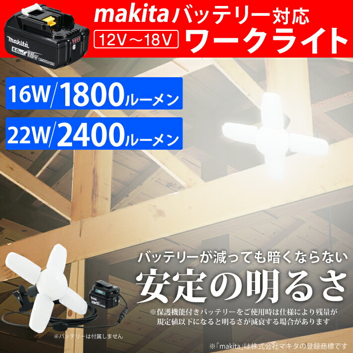 【1年保証】HEMAJUN 投光器 led 折りたたみ投光器 マキタ バッテリーと互換性あり 16W 1800lmと22W 2400lmの2仕様選択可 12V-18V対応 作業灯 ライト スイッチ付 屋外 昼光色6500K 18V 照明 クリップライト USBボート2個 収納バッグ 投光灯