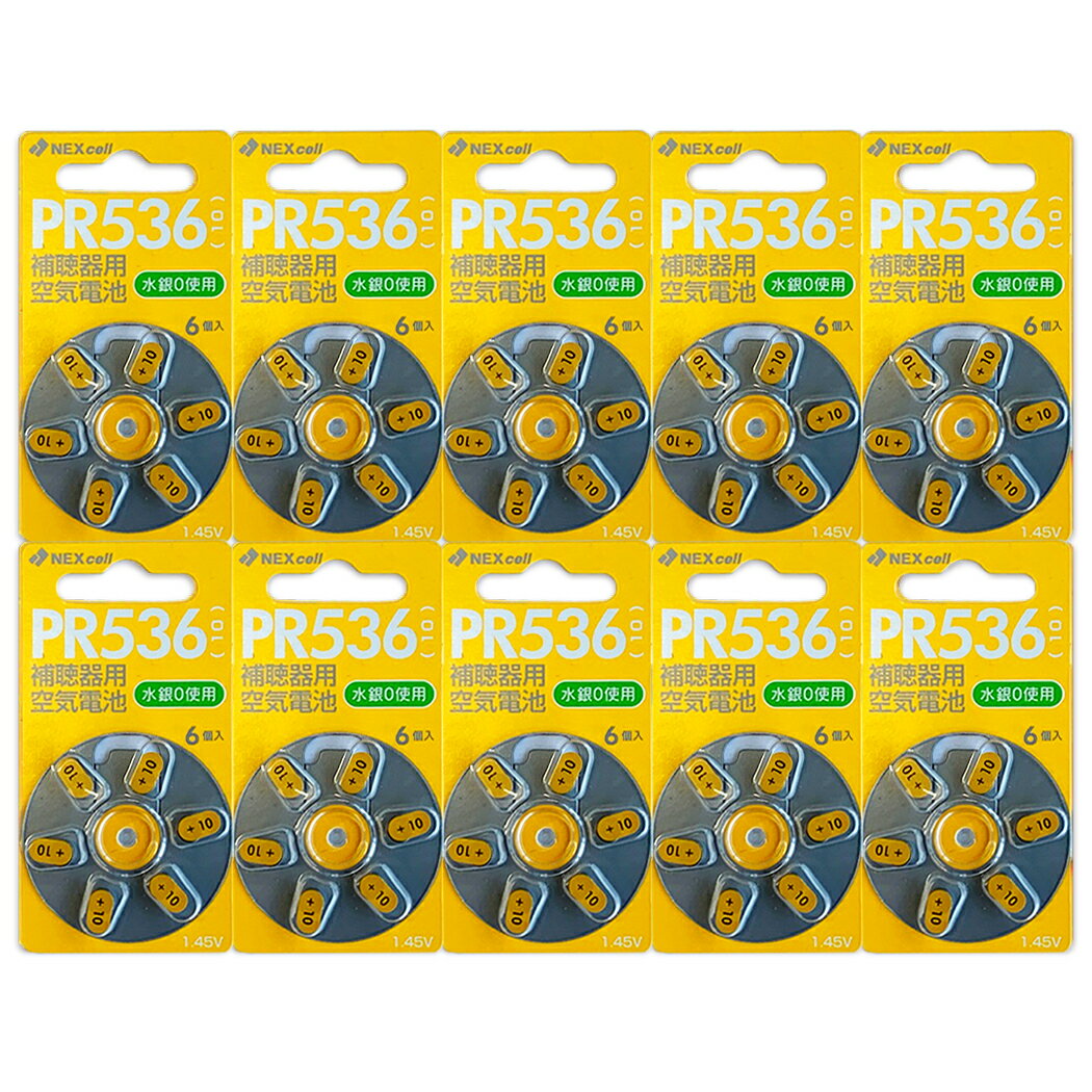空気電池 補聴器 電池 PR536 (10) 6個入り×10パック (60粒) 1パックあたり250円(税込275円)! ドイツ製 補聴器用空気電池 NEXcell ネクセル製 補聴器 難聴 補聴器電池