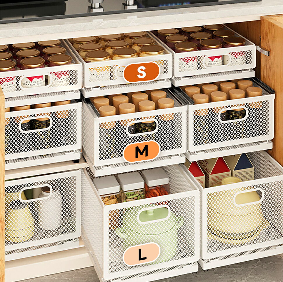 【送料無料】スライド式 収納ケース 収納ボックス きんぞく製 大容量 シンク下 キッチン シンク 引き出し 収納 整理 組立簡単 静音 お手入れも簡単 穴開け不要 取り出しやすい スライドレール付き キチン 台所用 洗面所収納 多用途