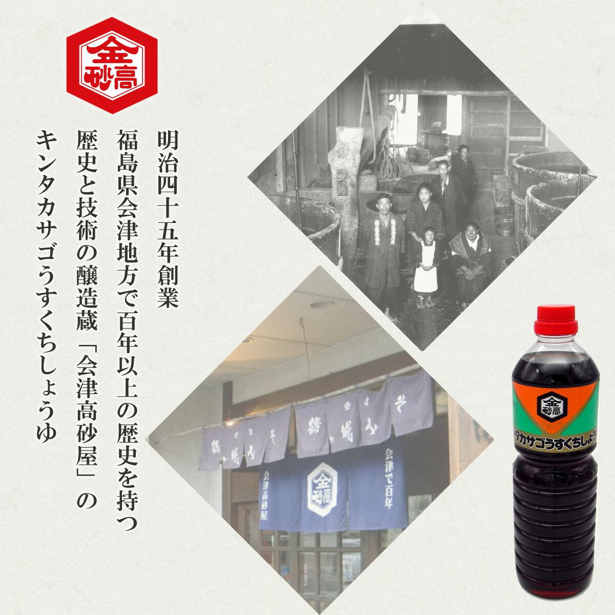【楽天スーパーSALE10%OFF】醤油 淡口しょうゆ 会津高砂屋 キンタカサゴ うすくちしょうゆ 1L PET 1本/3本/6本/8本 自家用 簡易包装 贈答用 美味しい しょうゆ 会津 喜多方ラーメン 刺身 割烹 淡麗
