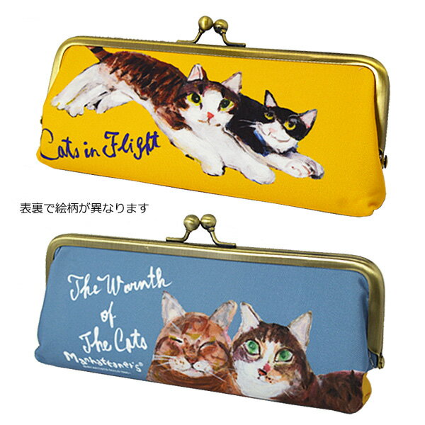 ●Manhattaner's マンハッタナーズ【がま口ケース メガネケース ペア猫模様】眼鏡ケース セミハードケース 小物入れ ポーチ かわいい おしゃれ 猫 ねこ ネコ バイカラー MAN-41/094402【楽ギフ_包装選択】パール