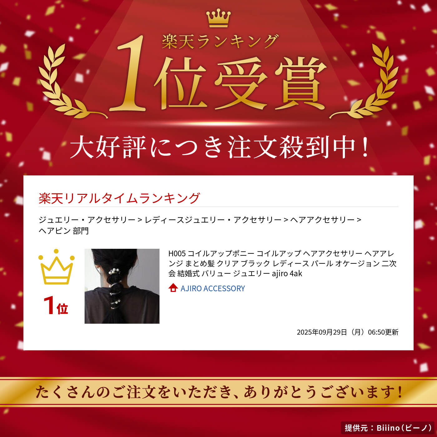 H005 コイルアップポニー コイルアップ ヘアアクセサリー ヘアアレンジ まとめ髪 クリア ブラック レディース パール オケージョン 二次会 結婚式 バリュー ジュエリー ajiro 4ak