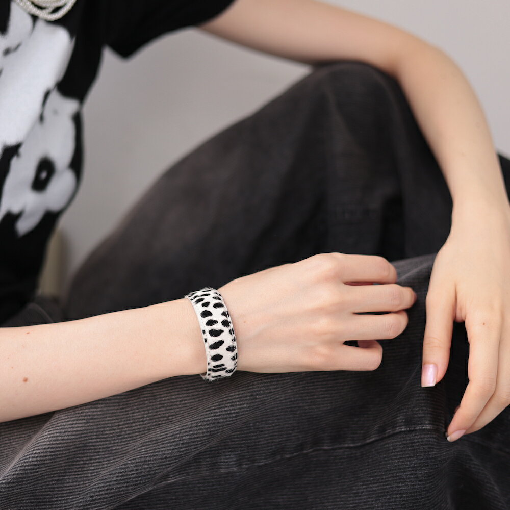N270 バングル 馬毛 豹柄 レオパード ダルメシアン ホースヘア アニマル 高級感 レザー ブラウン ホワイト おしゃれ レディース 女性 ギフト プレゼント 個性 調節可能 フリーサイズ