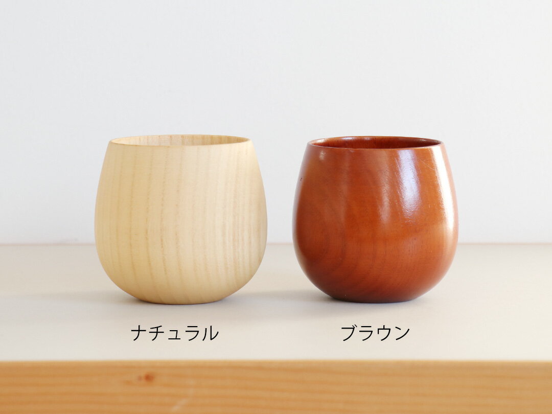 木製湯呑み エッグカップ ころんと丸い卵形の木製湯呑み。 和洋問わずにご使用いただけるスッキリした形状で、 スープカップとして食卓に並べてもいいかもしれませんね。 木製湯呑みは陶器と比べて熱伝導率が低く、熱くなりにくく保温性も高いという優れた所もあります。 ナチュラルとブラウンの2種類があり、 ナチュラルはウレタン塗装でマットな質感、 ブラウンは漆塗りでつるりとしてツヤがあります。 質感が異なりますのでお好みに合わせてお選びください。 電子レンジ:× オーブン:× 食洗機:× 商品詳細 サイズ φ87 × H82 mm 満水容量:250ml 素材 天然木、漆(ブラウン)、ウレタン(ナチュラル) 注意事項 ・天然木を使用いているため1点ずつ木目や色合いに差がございます。 ・製作過程でついた凹凸がある場合があります。 ・宅配便(ヤマト運輸)発送商品です。 食器 アイテム一覧