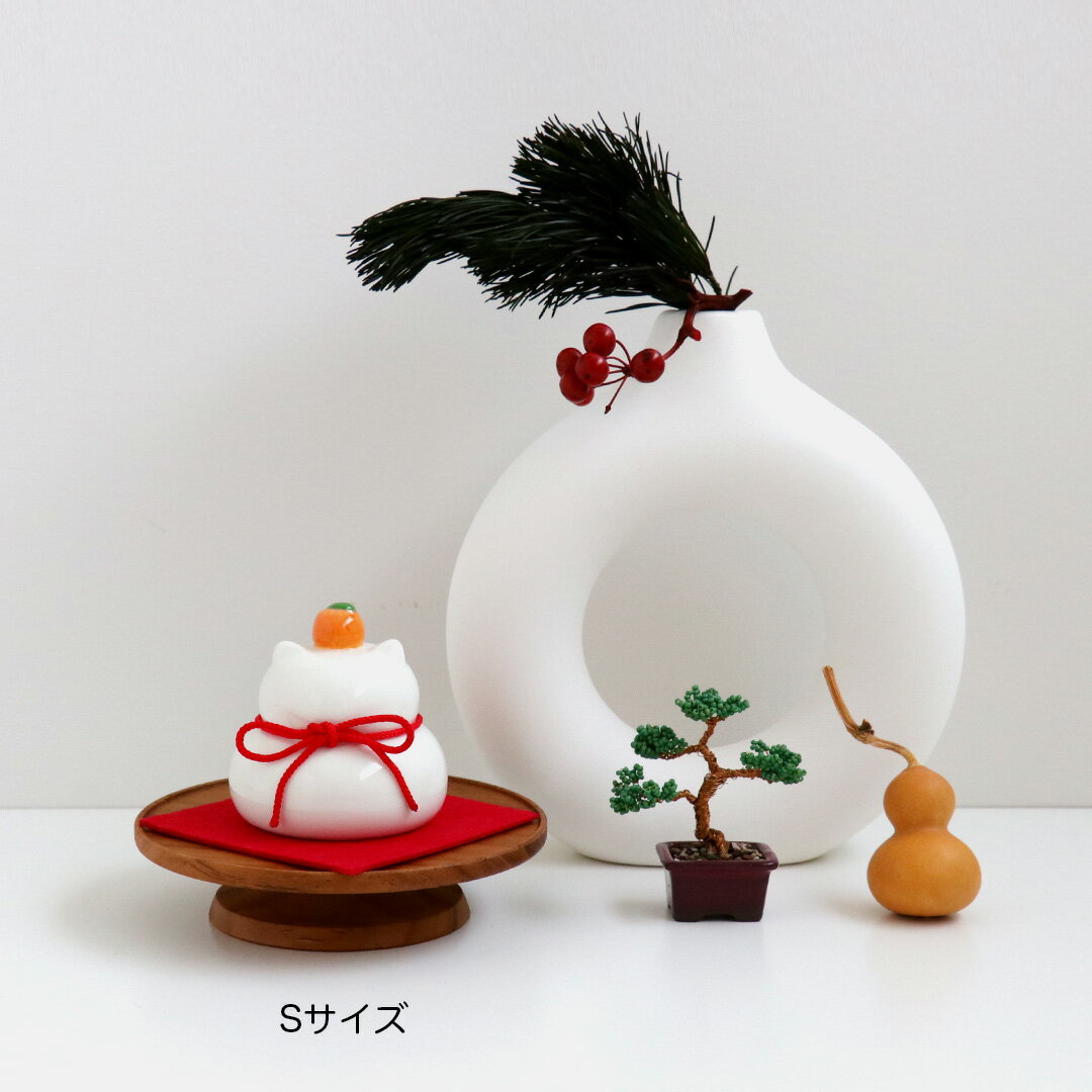 陶器の猫鏡餅 鏡餅飾り 陶器 正月 飾り 置物 ナチュラル インテリア お正月飾り かがみもち 年末年始 おしゃれ かわいい ギフト プレゼント