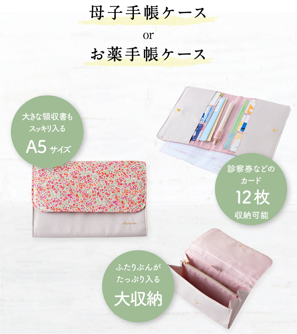 ■【新商品】母子手帳ケース お薬手帳ケース 犬印 ジャバラ 犬印本舗 マタニティ リバティ柄 人気 植物 花 薄型 軽量 大収納 産前 産後ママの必需品 ファスナーポケット カードホルダー 診察券 妊婦検診補助券 左右対称の仕様 A5収納可能■品番:10009【母子手帳ケース】■サイズ(cm):横23×縦18,ジャバラマチ6cm幅■カラー:ベージュ,ブルーグレイ,ネイビー,オリジナルピンク■素材:ポリエステル100%,リバティ柄部分-綿100%■商品特徴妊娠期~子育て期の長期間を考え2人分をすっきり収納できます。左右対称の仕様で ママエリアとベビーエリアと使用できます。 診察券用カードポケットが12個。小物類をまとめられるファスナーポケット付きです。従来製品より軽量で持ち運びしやすいです。(約140g)【お薬手帳ケース】■サイズ(cm):横13.5×縦19■カラー:ベージュ,ブルーグレイ,ネイビー,オリジナルピンク■素材:ポリエステル100%,リバティ柄部分-綿100%■商品特徴A5の領収書がキレイに入るポケットが一つあります。また、医療書A6カード&お薬手帳が入る大ポケットが二つあります。 診察券用カードポケットが12個。小物類をまとめられるファスナーポケット付きです。従来製品より軽量で持ち運びしやすいです。(約140g)【ご注意】モニターによっては写真と実物の色味が異なる場合があります。母子手帳ケース お薬手帳ケース 犬印 ジャバラ 犬印本舗 マタニティ リバティ柄 人気 植物 花 薄型 軽量 大収納 産前 産後ママの必需品 ファスナーポケット カードホルダー 診察券 妊婦検診補助券 左右対称の仕様 A5収納可能 関連商品 お揃いの柄のおむつポーチ 授乳ケープ