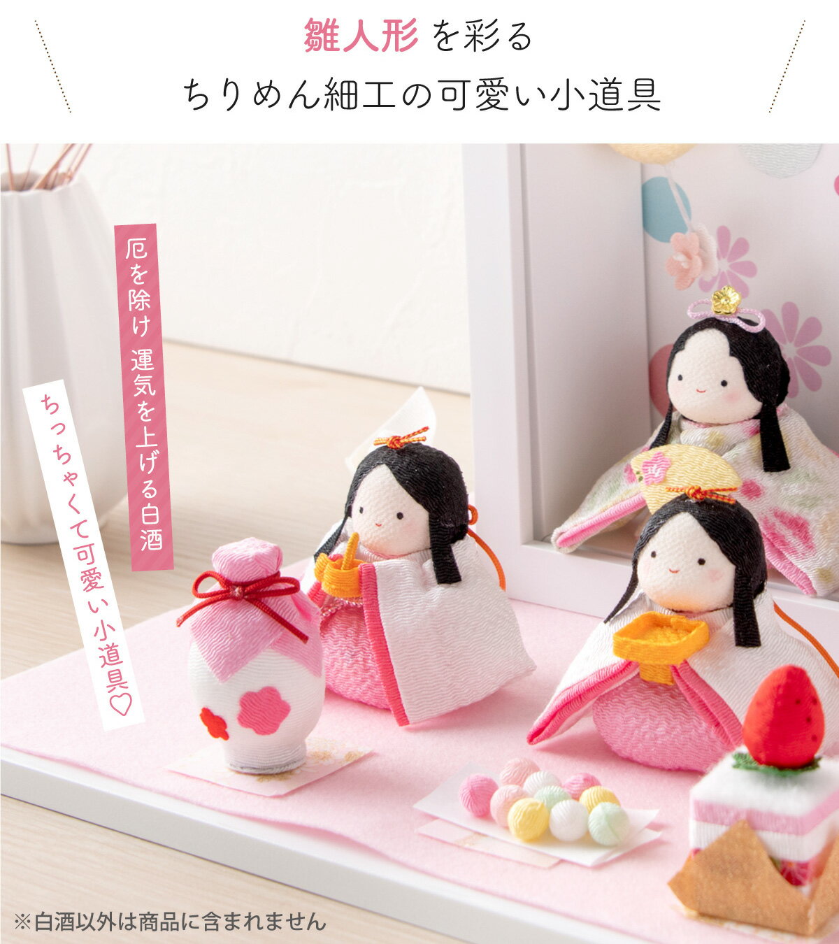 雛人形 ひな人形 小道具 ひな人形 ちりめん 2026年【ちりめん細工 白酒】ひな人形用小道具セット お雛様 京都老舗 龍虎堂 リュウコドウ