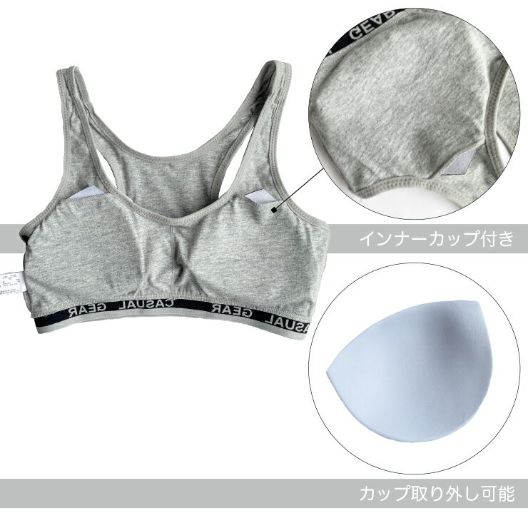 ガールズ ファースト ブラ Casual Girls 胸が気になり始めてきたお子様におすすめのファーストブラです。 お好みでパット取り外しできます。 綿素材なので安心。 別売りのショーツと組み合わせることができます。 【カラー】ブラック/ホワイト/グレー 【素材】綿95%/ポリエステル5% 【サイズ】胸囲 (140)64〜72cm(150)70〜78cm(160)76〜84cm 【配送・メール便について】 こちらのアイテムはパット入りのためメール便ご利用の場合、胸部分を平たくして梱包します。 メール便対応個数・・3点まで■CASUAL GEAR関連商品 商品画像