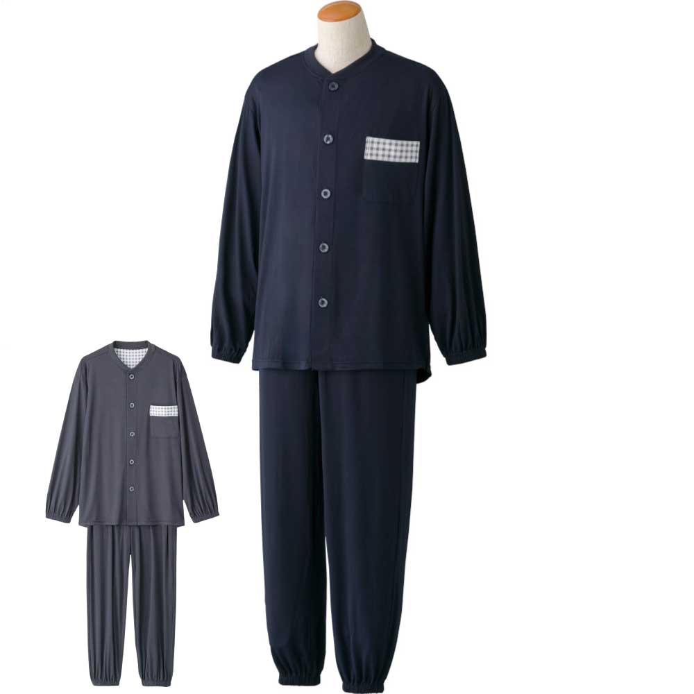 (上衣打合せ) 男性用 綿ニット 日本製 パジャマ 入院 介護※送料込み(柄はおまかせとなります)メンズ 紳士 あったか パジャマ スムース編み so