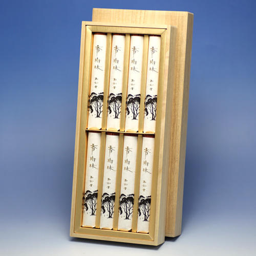 品名 短寸進物用線香 香樹林 短寸8把入 桐箱 お線香寸法 約138mm 燃焼時間 約30分 内容量(Net Weight) 8把入 総重量(Gross Weight) パッケージ 平型桐箱 香り 白檀の香り、甘く清浄な白檀の香り 特徴 成分 椨皮粉、インド産白檀、天然白檀油、龍脳、香料類 製造元 玉初堂 GYOKUSHODO 日本国内製 検索キーワード(共通)線香 お線香 進物線香 進物 ご進物 御進物 お悔やみ 贈答用 贈答 送料無料 送る 贈り物 ギフト 包装 包装無料 熨斗 熨斗無料 メッセージ オリジナルメッセージ 手提げ袋 お盆 盆 帰省 法要 周忌法要 新盆 初盆 新盆見舞い 喪中 喪中見舞い お供え 供え 御供 御佛前 御仏前 御霊前 仏具 仏壇 ぶつだん 神具 供養 四十九日 一周忌 周忌 命日 葬儀 返礼 返礼品検索キーワード(個別) 短寸進物用線香香樹林 短寸8把入 桐箱KOJURIN こうじゅりん甘く清浄な白檀の香り〜 玉初堂 GYOKUSHODO 〜 高級実用線香 香樹林 〜 甘く清浄な白檀の香り 〜 インド・カルタナカ産の香木「白檀」をふんだんに配合し、その薫りを余すところなく生かすよう、秘伝の調香法を駆使して創りあげたお線香です。甘く爽やかな薫り、清浄な移り香はどなたにもお気に召すものと存じます。