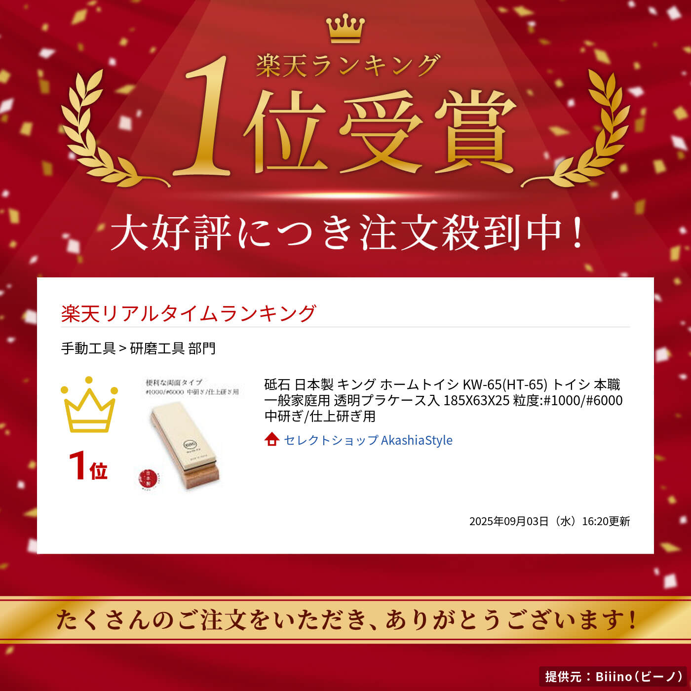 砥石 日本製 キング ホームトイシ KW-65(HT-65) トイシ 本職 一般家庭用 透明プラケース入 185X63X25 粒度:#1000/#6000 中研ぎ/仕上研ぎ用