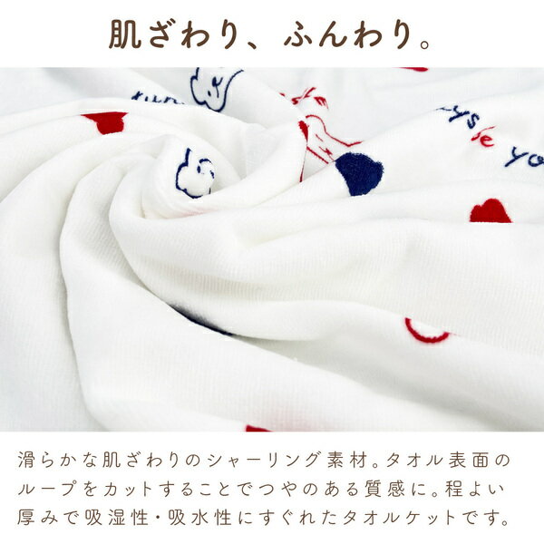 製品仕様 商品名 タオルケット トリコロール 素材/材質 綿100%(シャーリング) 色 オフホワイト サイズ 約120×85cm ご注意事項 モニターの発色の具合によって実際のものと色が異なる場合がございます。ご了承ください。 その他商品説明 赤と紺のさわやかなトリコロールカラーのくまさん柄です。 男の子にも女の子にもよく似合います。 タオル表面のループをカットすることで滑らかでつやのあるビロードのような質感になります。