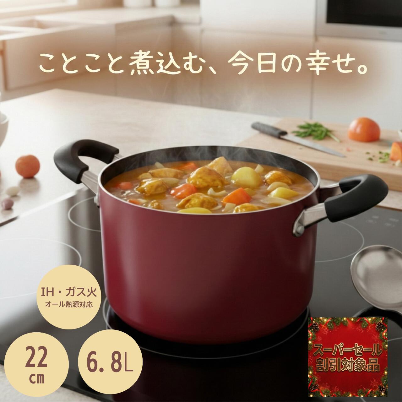 半寸胴鍋 22cm 5.5L ガラス鍋...