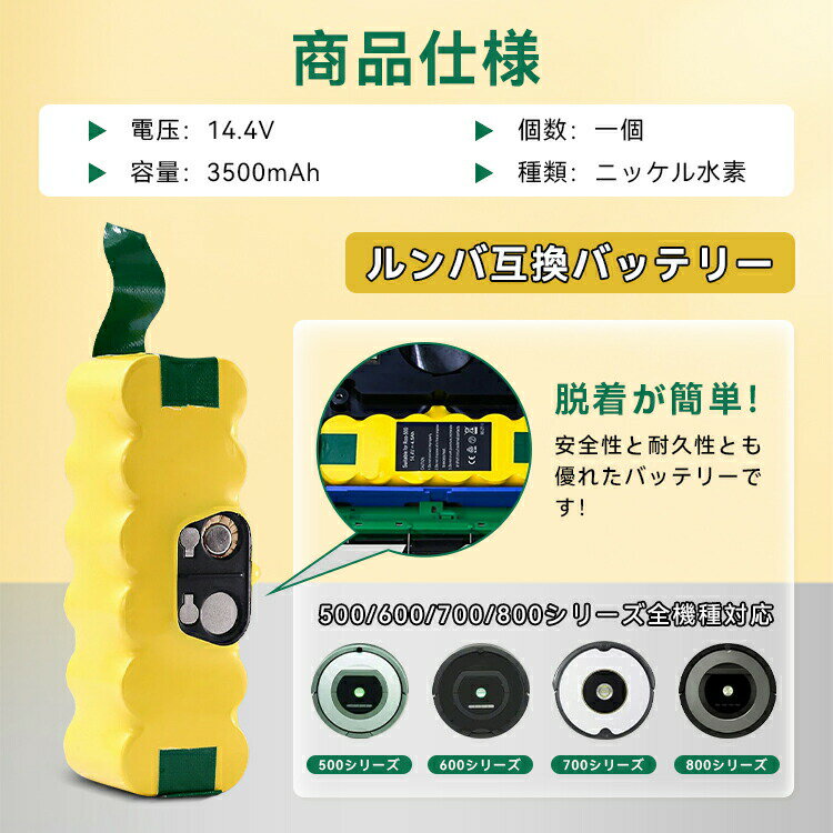 ルンバ iRobot 互換バッテリー 大容量3500mAh 14.4v ルンバ500 600 700 800 900 シリーズ対応 長時間稼動 PSE認証