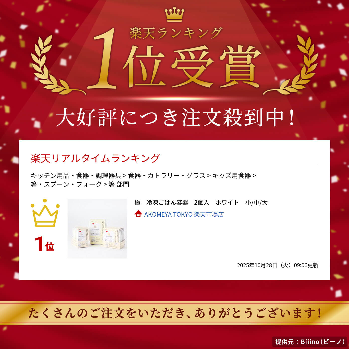 冷凍ご飯をおいしく解凍できる「冷凍ごはん容器」2個セット 全米販・お米マイスター徳永真悟氏共同企画。冷凍ご飯をおいしく解凍できる「冷凍ごはん容器」の、使いやすい一膳サイズ。お手入れしやすく、収納性の良いシンプルなデザインお手入れしやすいシンプルなデザイン。 ポイント ・すのこパーツで余分な水分が下に落ち、ご飯のべたつきを防ぎます。・重ねられてかさばらず、冷凍庫にスッキリ収納できます。大サイズ1つの上に、小サイズ2つがぴったり重なります。 使用方法 [1]炊き立てのきちんとほぐしたご飯をふんわりと入れて、フタを閉めます。[2]あら熱がとれたら冷凍します。[3]食べるときは、フタをしたまま電子レンジで加熱してください。 3サイズをご用意 ◎小(小盛り:約100g) ◎中(1膳分:約180g) ◎大(大盛り:約250g) 2