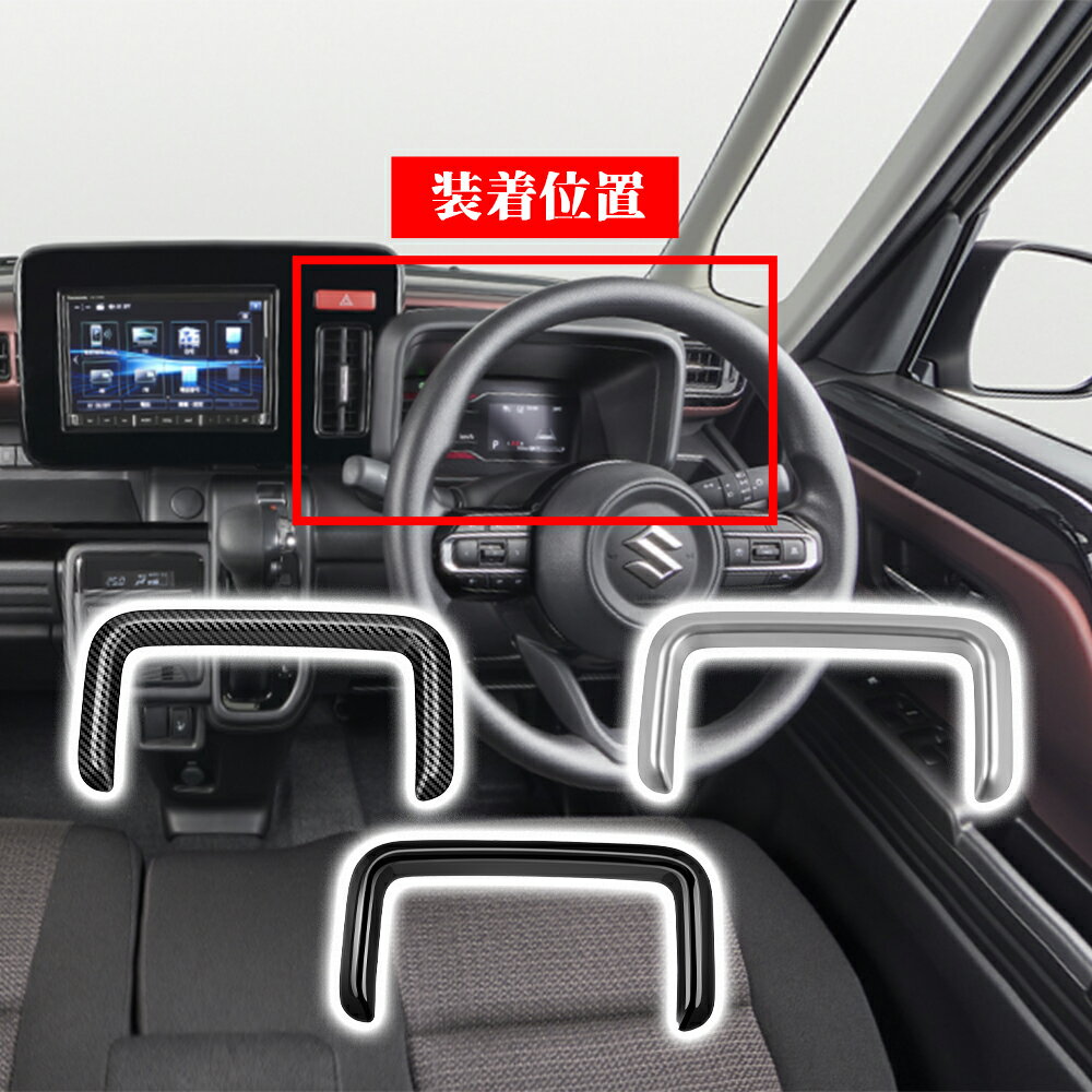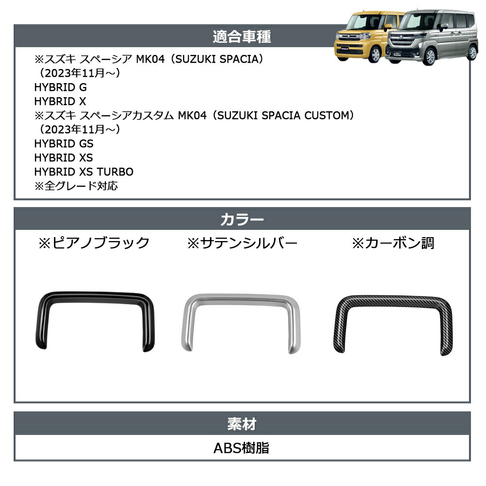 スズキ 新型スペーシアカスタム パーツ メーターフードパネル カスタムパーツ ドレスアップ アクセサリー インテリアパネル 内装 SPACIA CUSTOM mk54s mk94s 全グレード対応 スズキ 新型スペーシアカスタム パーツ スズキ 新型スペーシアカスタム パーツ メーターフードパネル カスタムパーツ ドレスアップ アクセサリー インテリアパネル 内装 SPACIA CUSTOM mk54s mk94s 全グレード対応【商品】スズキ スペーシ/スペーシアカスタム MK04系 メーターパネル 1P【適合車種】スズキ スペーシア MK04(SUZUKI SPACIA)(2023年11月~)HYBRID GHYBRID Xスズキ スペーシアカスタム MK04(SUZUKI SPACIA CUSTOM)(2023年11月~)HYBRID GSHYBRID XSHYBRID XS TURBO※全グレード対応【素材】ABS樹脂【カラー】サテンシルバーピアノブラックカーボン調【商品説明】★ ワンポイントのカスタムでさりげなく、上質なドレスアップを実現。★主要なスピードメーター上部をABS樹脂のきらめくラインで縁取ると、さりげないパンチで運転席がよりスタイリッシュに早変わり!★内装にフィットしたシンプルデザインで、違和感なくレーシーさと重厚感の漂う大人の演出を楽しめます。★車種専用設計のためフィット感は抜群!★商品裏面付属の両面テープで簡単に貼り付けできます。【取付方法】商品付属の両面テープで簡単に貼り付けが可能。取り付け時は商品と取り付ける本体の接着面のほこりや油分を拭き取り、商品裏面の両面テープを剥がさず、一旦フィッテング確認してください。フィッテングに問題がない場合、商品裏面の両面テープの剥離紙をはがし取り付け、しっかり押し付けながら本体と密着させてください。万が一、貼付け前の仮フィッティング時に隙間等がある場合、また粘着力が弱い場合は強力な両面テープ等で補強することをおすすめします。【保証】■商品到着後6ヶ月保障■※保証期間を超えますと、如何なる場合でもご対応いたしかねます。予めご了承ください。※商品裏面に付属の両面テープがついている商品は、両面テープを一旦剥がされますと保証期間内であっても保証対象外となります。予めご了承ください。※商品装着前に商品の状態確認及び取りつける本体とのフィッティング確認をお願いします。 5