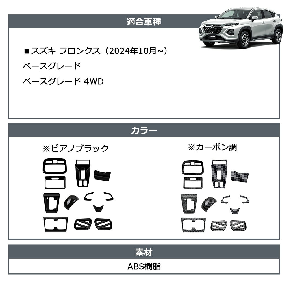 スズキ フロンクス ベースグレード 専用 パーツ インテリアパネル 12点セット ガーニッシュ オーバーヘッドコンソールパネル シフトパネル フロントドリンクホルダーカバー シフトノブカバー カスタム パーツ ドレスアップ WDB3S WEB3S
