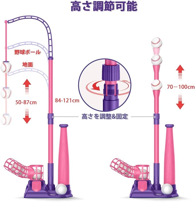 商品詳細 商品説明 【3つの遊び方】 ハンギングティー:自己粘着カバー付きの野球ボールで、地面から50cmから87cmまでどこにでも吊るすことができます。画期的なハンギングティーは、子供たちにより多くの楽しみをもたらします!自動ランチャー:非常に使いやすく、子供がペダルを踏むだけで、ボールが自動的に跳ね上がり、簡単にボールを打つことができます。自動ランチャーはタイムラグが発生してくれるので、親が毎回手伝ってあげる事も無い。固定バッティングティー:伝統的な固定スタンドティーは、ヒット率が格段に上がり、また腕や手首の力を鍛えることもでき、より楽しさを実感できます。 【高さ調節可能】 吊り下げ野球ティーの高さは84cmから121cmまで調整可能です。 固定バッティングティーの高さは70cmから100cmまで調整できます。お子様の年齢や身長に合わせてさまざまな高さを簡単に調整でき、お子様と一緒に野球の楽しみを成長させましょう。 【組立式/収納簡単】 3-in-1野球セットには、格納式バット、自動発射装置、ボール、収納バッグ、及び組み立てに必要なアクセサリーがすべて含まれて、組み立て説明に従ってわずか5分間かかりません。ハンギングティーと固定スタンドティーの切り替えもとても簡単です。また、野球セットを分解して保管でき、片付けが迅速かつ簡単になり、生活空間を乱雑にしません。屋外でも屋内でも最適なスポーツゲームです。 【子供への理想的な贈り物】 この野球おもちゃセットは、楽しくストレス解消をしつつ、体を鍛えることもでき、お子様が野球に対する興味をを高め、手と目の協調性を向上させることができます。子供が1人で遊べはもちろん、ご家族で一緒に遊ぶにも最適で、親子の絆を深めることができます。子供への誕生日、クリスマス、感謝祭、新年の贈り物に最適です。 【安全で耐久性】 野球セットは高品質で耐久性のある素材で作られております。軽量で格納式バットは持ちやすく、お子様が安全で楽しく野球のスキルを練習することができます。お子様が幼い頃からバッティングを楽しく始めよう! ご注意 ※運送の状況により、まれに外箱が潰れる場合がございます。 ※商品や配送に関して気になる点や不具合がございましたら、お手数ですが、まずは当店までご相談ください。 ※製品の仕様は予告なく変更されることがありますので、予めご了承ください。 ※商品写真はできる限り実物の色に近いようにしておりますが、パソコンの画質や光線環境により実際の商品と色味・素材感が多少異なる場合がございますので、予めご了承ください。 ※測り方によって1-2cmの誤差が生じる場合がございます。 ※当店の在庫は、店舗と共有しており日々流動的に動いております。商品によっては、弊社運営の多店舗と在庫を共有しているものございます。そのため、ご注文時に在庫があっても、タイミングによっては既に完売、欠品の場合がございます。完売、欠品の場合には連絡の上、ご注文キャンセルか入荷をお待ち頂くかのご希望を確認させて頂きます。