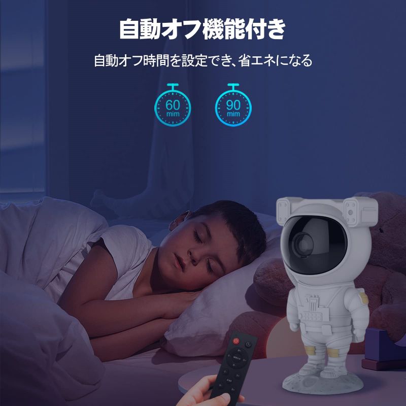 商品名 プラネタリウム 産地:中国 カラー ホワイト ブラック サイズ 約12.3*11.5*24cm 重量 約0.7kg 商品特徴 【LEDデジタル二色投影&星空プロジェクター】スタープロジェクターライトは浮動する星雲と満点のスターを組み合わせるて、二色投影を実現できます。単色と混色、色の変換、波紋の低速/高速回転を搭載して、沢山素敵な星空ライト効果が作り出されると、自然の星空景色が手軽に楽しめます。 【星雲効果簡単調整】8種類の星雲、5階段変換速度、5階段の明るさの調整、また星の変換周波数も4階段が調整でき、多様な星空への憧れをすべて満足できます!毎日違う星空の下にお子様はぐっすり眠れます。 【リモコン操作簡単&自動オフ機能付き】スタープロジェクターライトの投影効果は付属されたリモコンを通して、簡単に操作できます。更に自動オフ機能付きなので、自動オフ時間を1Hまたは1.5Hに設定して省エネになります。美しい星空を楽しめるうちに安心の入眠できます。 【ユニークな外観と革新的なデザイン】ユニークなデザインと星空と天の川の星明かりは、満点の星空を見て、魔法に満ちた楽園のルームを探索することができます。宇宙士の頭は磁力で360°回転でき、星雲を制限なくどこにでも投影できます。 また、宇宙飛行士の腕を動かすことができ、あらゆるポーズをとることができるので、デコレーションにも最適です。一緒に宇宙ステーションを探索しましょう。 【子供に最適&人気ギフト】子供だけ向けギフトではなく、ハロウィーン、クリスマス、お祝い、誕生日、リラックス、パーティー、撮影などにも最適です。 メーカー希望小売価格はメーカーカタログに基づいて掲載しています
