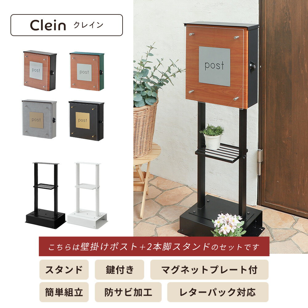 【1年保証&当店限定特典付】ポスト スタンドポスト 置き型 おしゃれ レターパック 郵便ポスト 表札 北欧 郵便受け メール便 メールボックス 戸建て 鍵付き 木目調 防犯 投函口 大きめ Clein クレイン 2本脚 TIERRA ティエラ